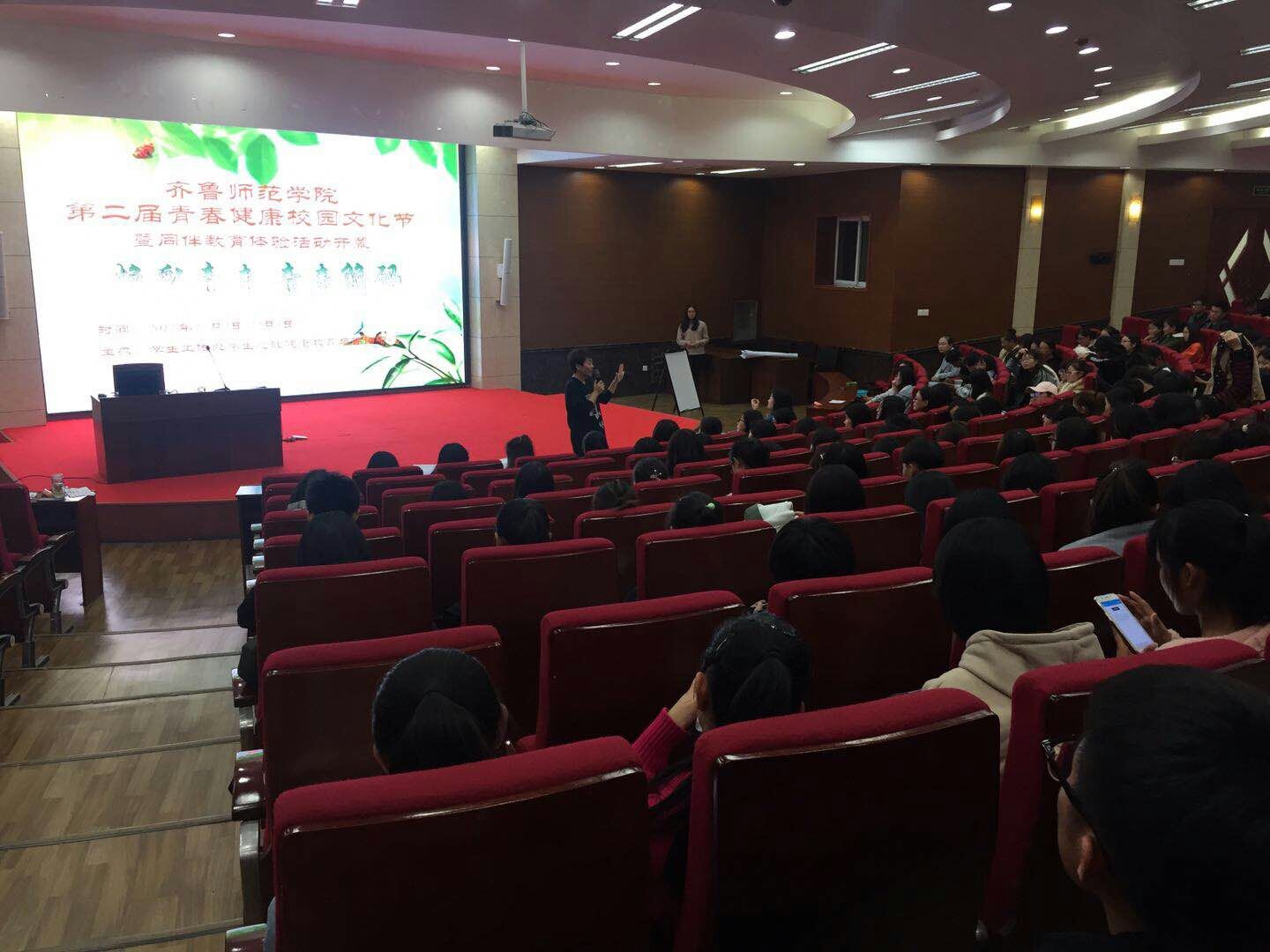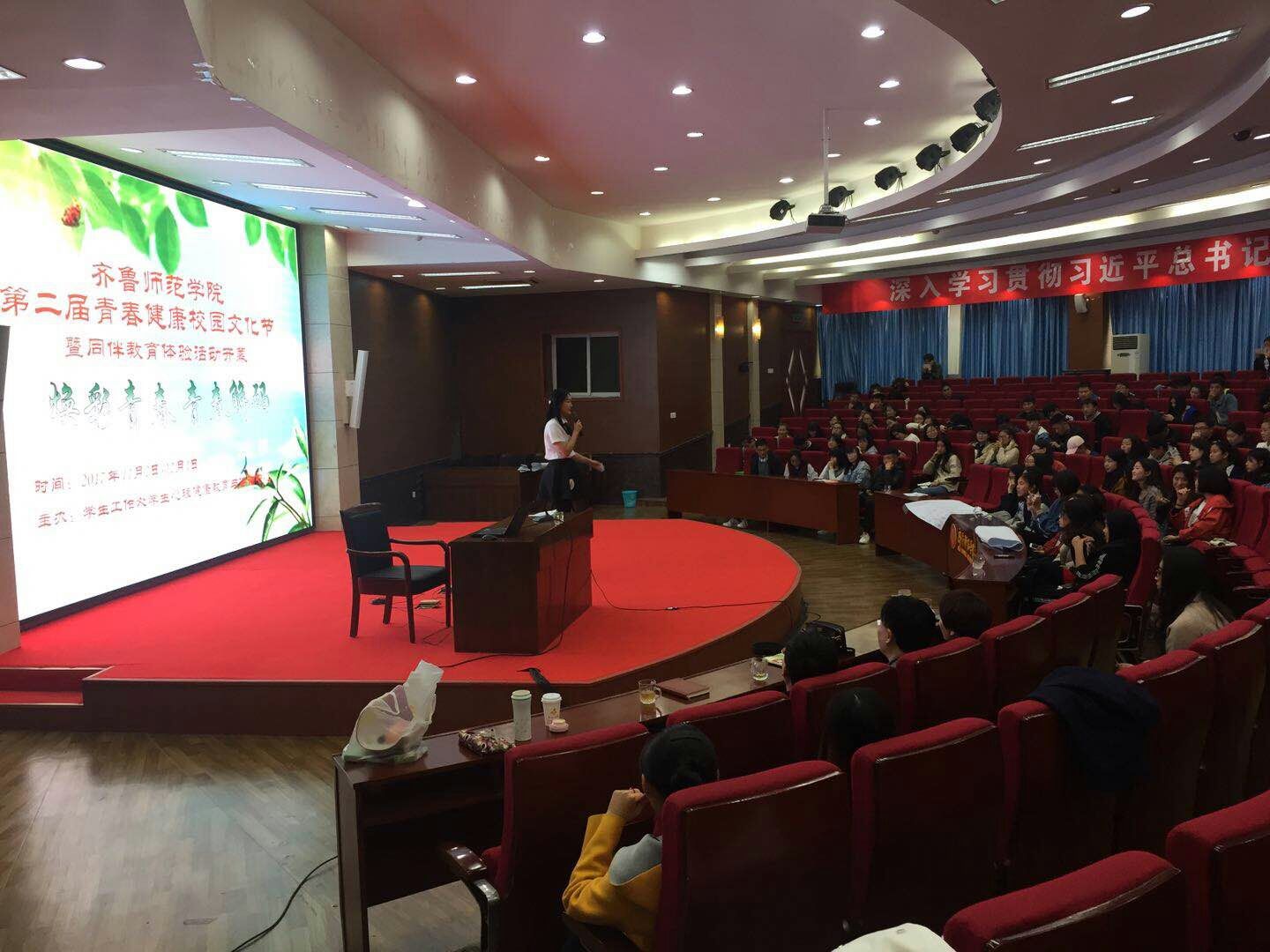 为进一步推广大学生青春健康的理念,加强大学生对性与生殖健康的科学认识,引导学生建立积极、健康的生活观念以及和谐的人际关系,我校学生心理健康教育与咨询中心于11月2日下午在章丘校区学术报告厅举办了齐鲁师范学院第二届青春健康校园文化节暨同伴教育体验活动开幕式暨专题培训。济南市计生协办公室主任赵荣桥、副调研员张均波出席了活动,省级青春健康主持人、济南护理职业学院俞芳老师进行了《成长之道》专题培训,我校青春健康同伴社成员以及各学院心理部成员、各班心理委员、社会工作全体在校生参加了体验式学习。