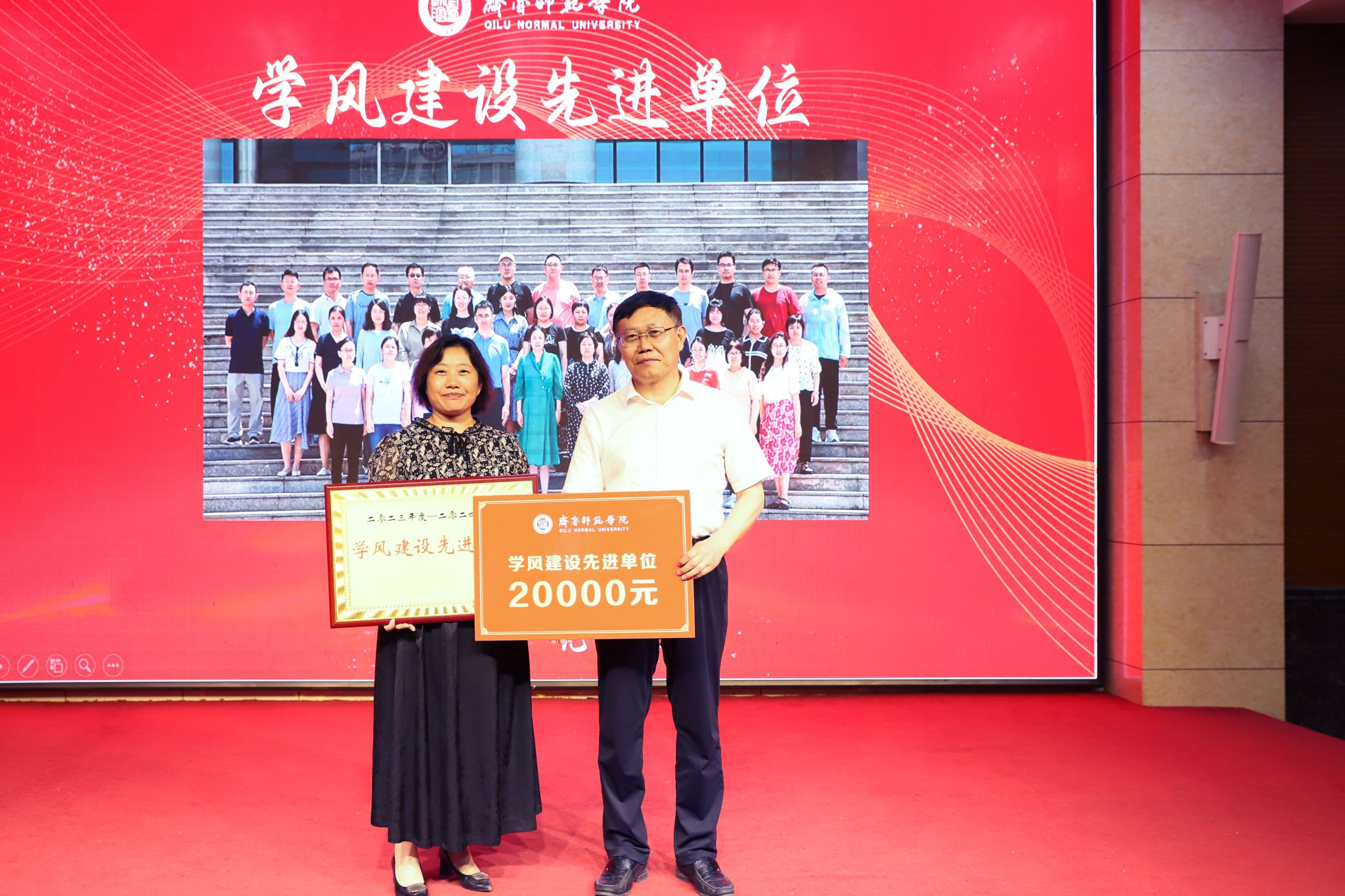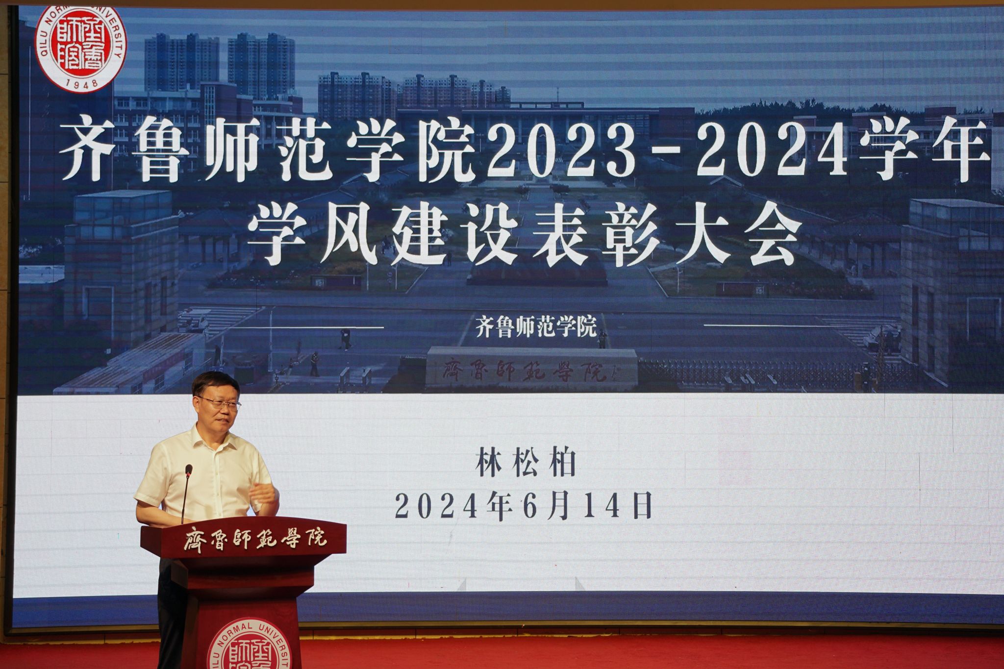 为持续加强学校学风建设工作,营造浓厚的学习氛围和良好的育人环境,总结经验、宣传典型、表彰先进,推动学风建设内涵式发展,6月14日下午,齐鲁师范学院在章丘校区第一学术报告厅隆重举行2023-2024学年学风建设表彰大会。党委书记林松柏,党委副书记赵敏,党委委员、纪委书记、监察专员高明辉,党委委员、宣传部部长孙磊出席。