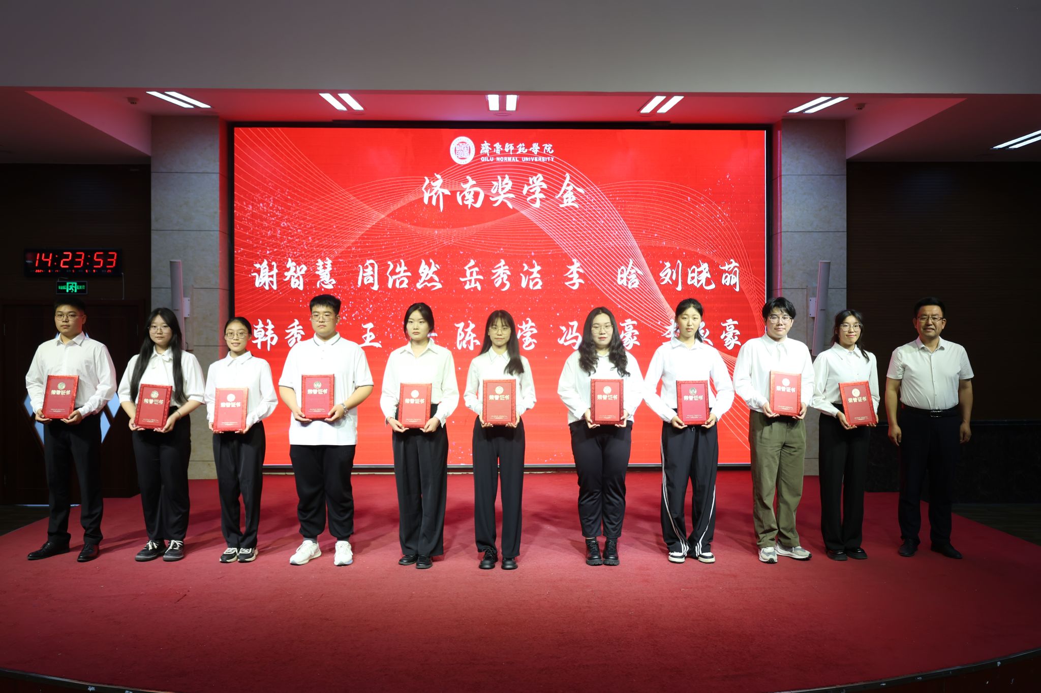 大会共表彰了39名优良学风标兵、4个优良学风宿舍、10个优良学风班、20名学风建设优秀指导教师、1个学风建设先进单位,以及国家奖学金、省政府奖学金、济南奖学金、校长奖学金、校级奖学金优秀师生个人和集体代表。校领导及相关职能部门负责人分别为获奖集体和个人颁发荣誉证书。