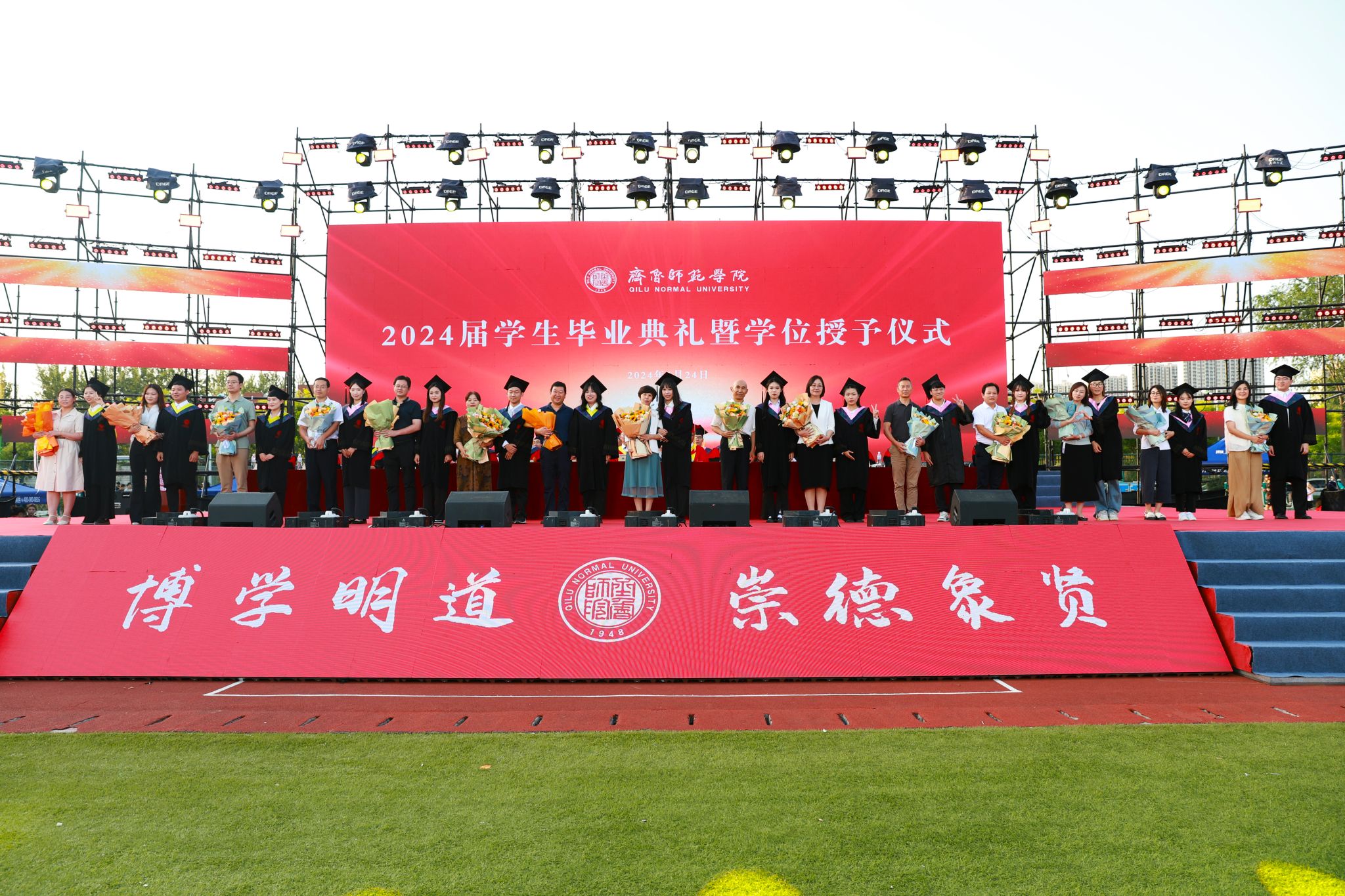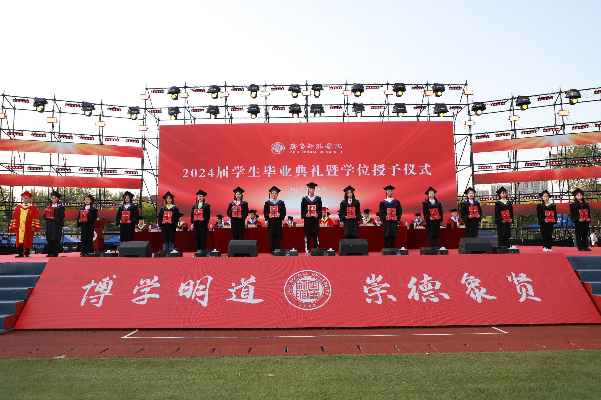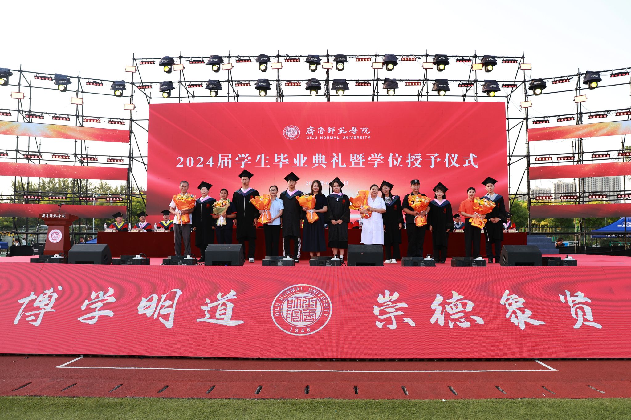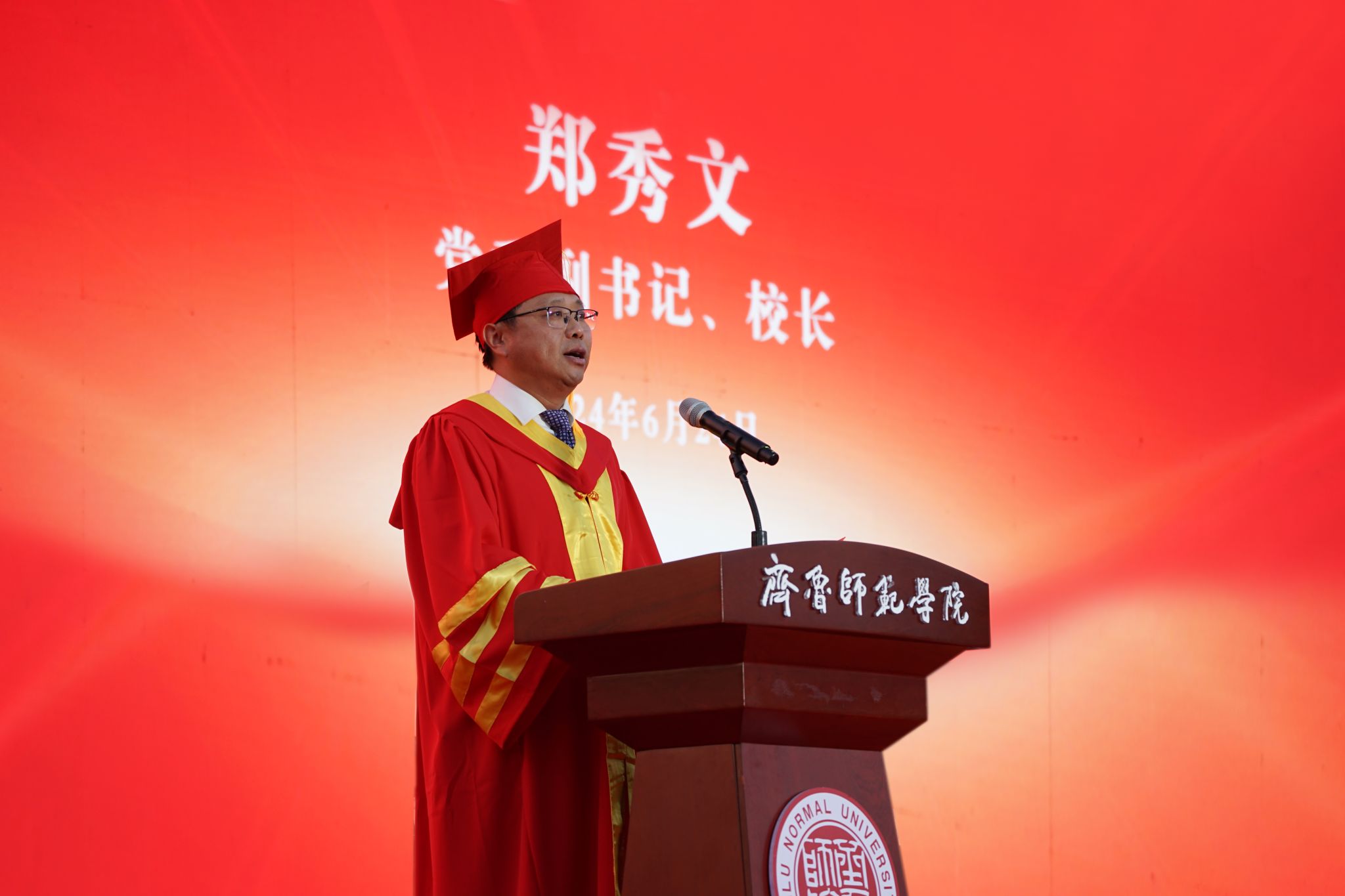 夏日晴光映未来,毕业风华启新征。6月24日下午,齐鲁师范学院2024届学生毕业典礼暨学士学位授予仪式在章丘校区体育场隆重举行,庆祝2024届毕业生圆满完成学业,开启人生新篇章。党委书记林松柏出席典礼并为2024届优秀毕业生颁发荣誉证书。党委副书记、校长郑秀文出席典礼并讲话。党委副书记赵敏,副校长张兆明,党委委员、纪委书记、省监委驻齐鲁师范学院监察专员高明辉,党委委员、副校长孙正,党委委员、党委统战部部长宋新刚,党委委员、党委宣传部部长孙磊出席典礼。典礼由孙正主持。