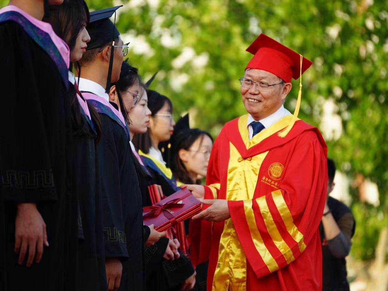 郑秀文在讲话中充分肯定了2024届毕业生取得的一系列成绩,向大家提出了希望和鼓励:一是见贤思齐,学习先贤的道德典范,筑牢个人的立身之本,成为新时代的谦谦君子。近年来,学校构建起以君子文化为内核的育人特色,希望大家未来,以“人不知而不愠,不亦君子乎”的风度,勤学多问,择善而从;不忘初心、修身立德,真正做到“文质彬彬,然后君子”。二是学习时代的风气之先,把握历史的发展脉络,做新时代的“开路先锋”。以嫦娥团队、神州团队、中国天眼FAST研发团队等青年团队的先进事迹为榜样,勇立时代潮头,争做时代先锋,真正做到“以青春力量引领时代风气之先”。三是学习身边的先进楷模,成为事业的发展中坚,做新时代的“追梦人”。希望学子们作为新时代建设者和参与者,以自强不息的精神奋力攀登,承担起国家富强、民族复兴、人民幸福的重任。