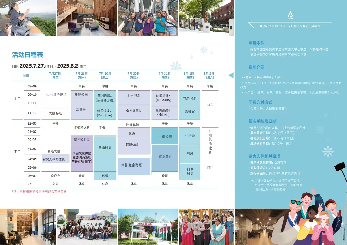 *不包含:往返机票、签证费、保险费、宿舍被褥租赁费、个人消费等需自行承担费用
