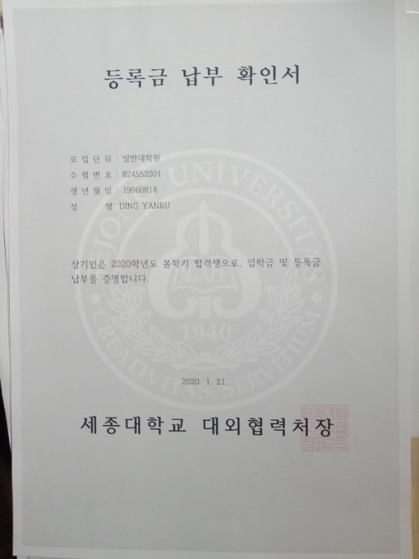 丁妍如同学于2019年3月报名在我校韩国语中心学习韩语,于10月份通过国家韩语能力考试并顺利被上述两所知名大学录取。