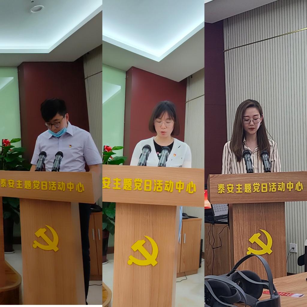 在泰安主题党日活动中心,党员教师们分别接受了初心教育、誓词教育和党史教育,参观了泰安党史展、真理厅、“泰山先锋”志愿服务总站等展厅,观看了《苏庆亮》《领航新征程》《信仰》等专题视频,还利用VR技术“实地”瞻仰了中共一大会址纪念馆。参观学习过程中,党员们认真聆听并主动向讲解员仔细询问,深受教育,受益匪浅。在随后的交流研讨中,葛飞、田甜、宋晓蕾三位同志分别发言,分享了个人的学习心得体会。