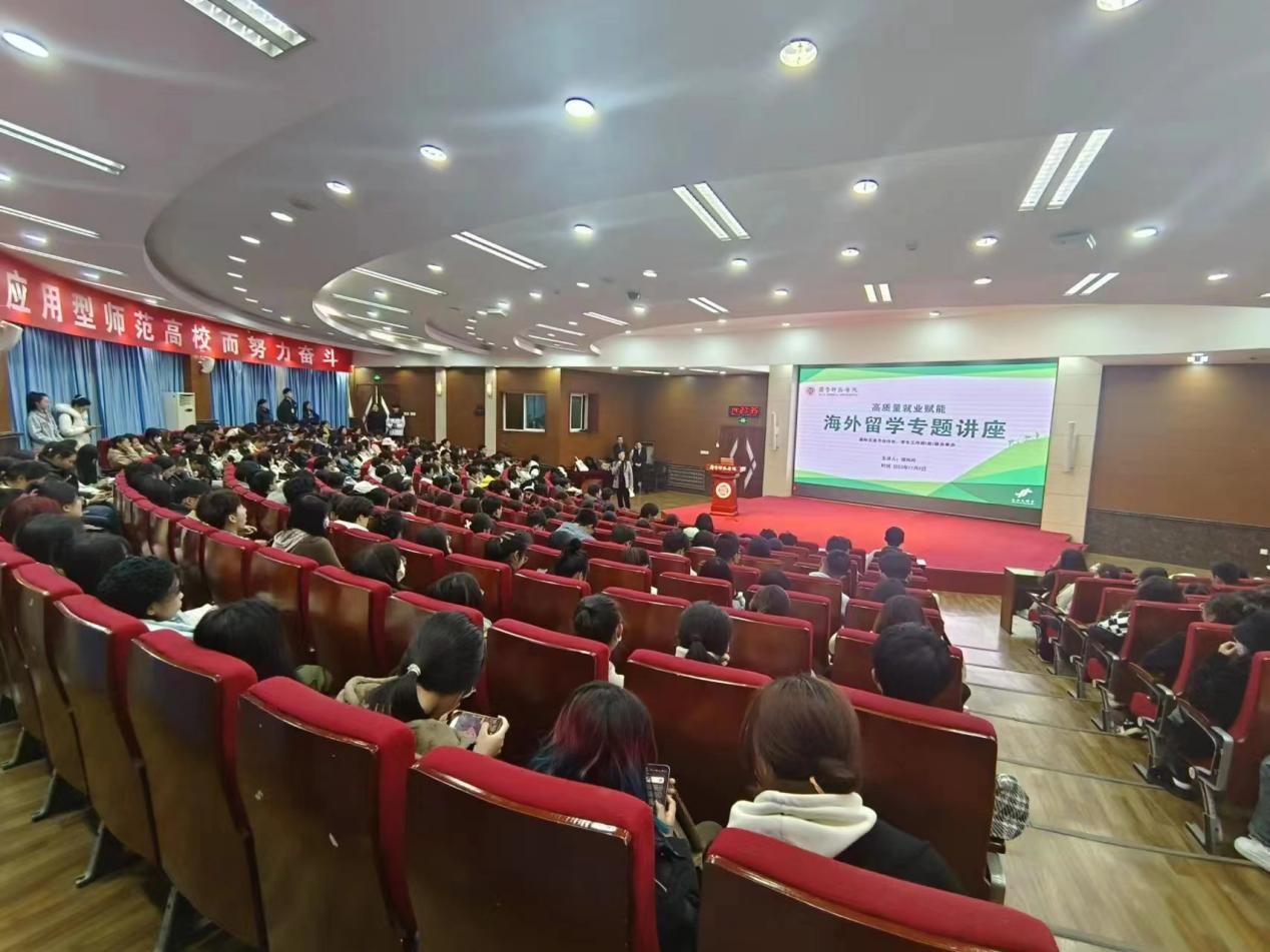 讲座伊始,何艳结合近几年高校本科生升学情况,剖析了国内升学的堵点、难点,指出随着国内考研形势的日益严峻,越来越多的学生选择奔赴海外寻求更高层次的教育,拓展国际视野,希望能够通过留学专题系列讲座,学习国际先进教育理念,进一步拓宽学生们的生涯视野,助力学生们海外求学成功,促进学校学生未来能够更高质量、更充分就业。
