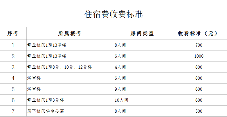 齐鲁师范学院住宿费收费标准